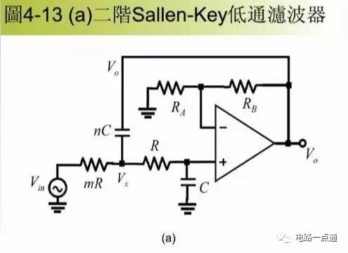 当两级RC电路的电阻、电容值相等时,叫赛伦凯电路,在二阶有源电路中引入一个负反馈,目的是使输出电压在高频率段迅速下降。