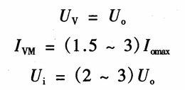 实际应用时,首先根据负载电压U 0 U0 和负载电流I 0 I0 来选择稳压管及确定输入电压U i Ui ,通常取: