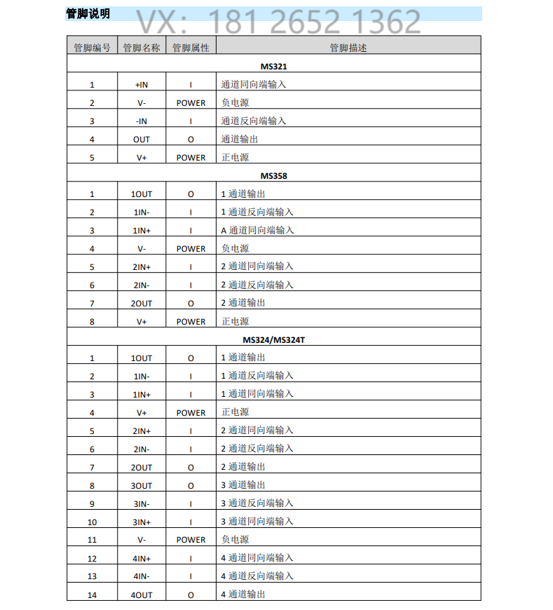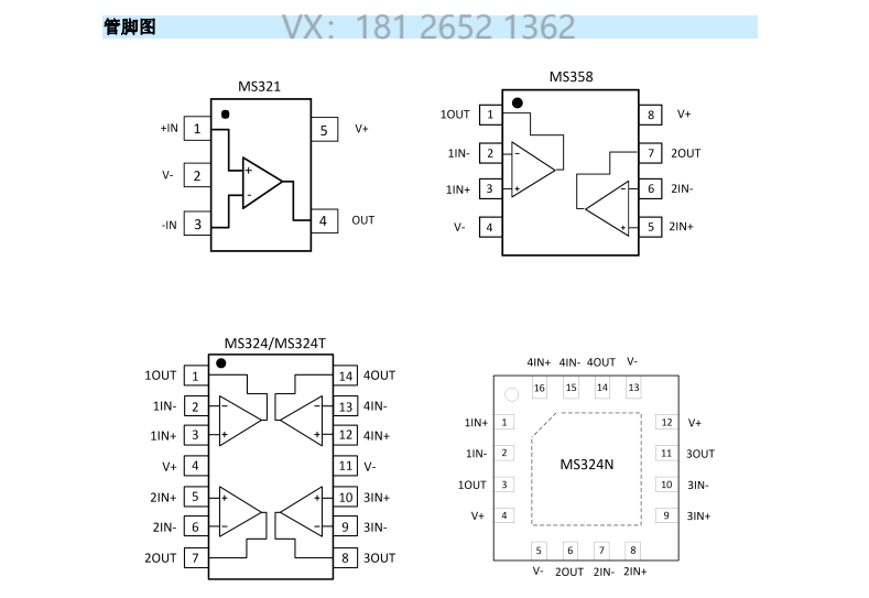 MS321/358/324分别适用于SOT23-5、SOP8、SOP14/TSSOP14 和QFN16封装。总的来说,MS321/358/324是一个低功耗,宽电源电压范围的运放。且它具有经济的价格,使其应用领域宽泛。