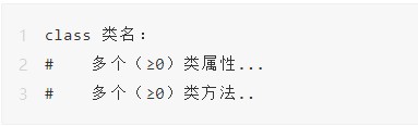 给类起好名字之后,其后要跟有冒号:,表示告诉 Python 解释器,下面要开始设计类的内部功能了,也就是编写类属性和类方法。