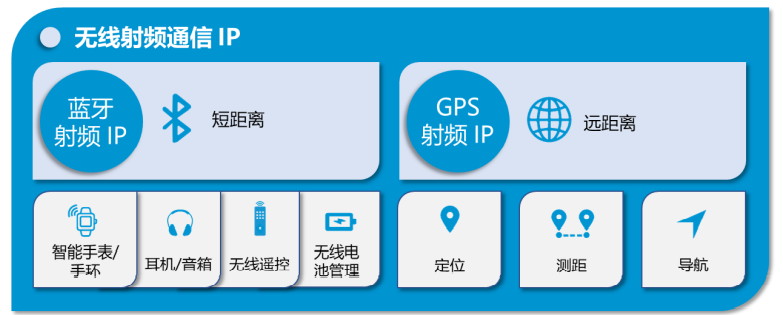 蓝牙射频IP(短距离)、GPS射频IP(远距离)产品,蓝牙射频IP最高可支持蓝牙5.2版本并向下兼容;GPS射频IP支持GPS和北斗双模双通道工作模式。