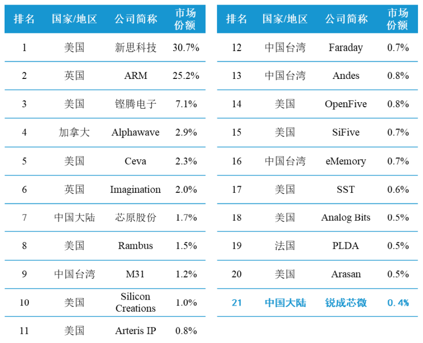 半导体IP市场竞争格局,以英美厂商为主导,其中美国的新思