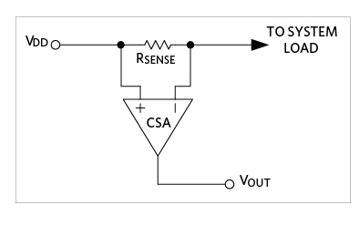 图 1. 电流检测放大器 (CSA) + 检测电阻。