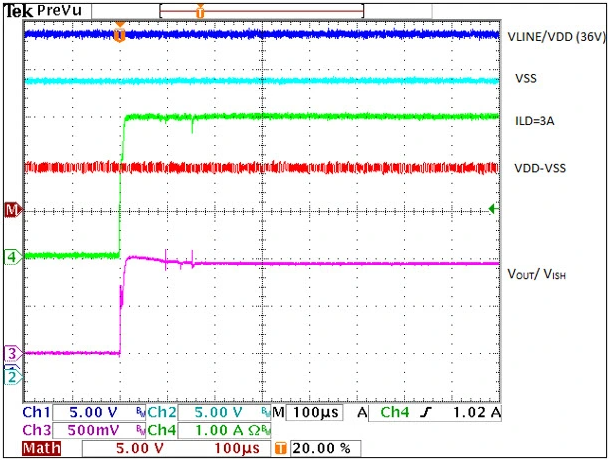 图 5. 3A I LOAD的上电瞬态响应。