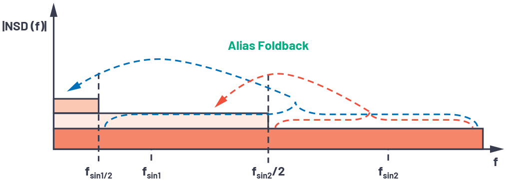 图7.输入噪声折返与采样频率的关系