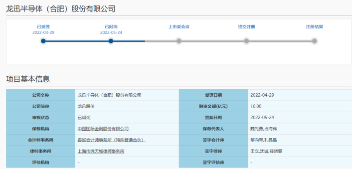5月24日,龙迅半导体科创板IPO进入问询审核阶段。2021年由于保荐人华安证券撤销保荐,龙迅半导体IPO被上交所终止。今年4月份再次启动IPO,冲刺科创板,募资9.58亿元,此次保荐机构更换为中国国际金融股份有限公司。