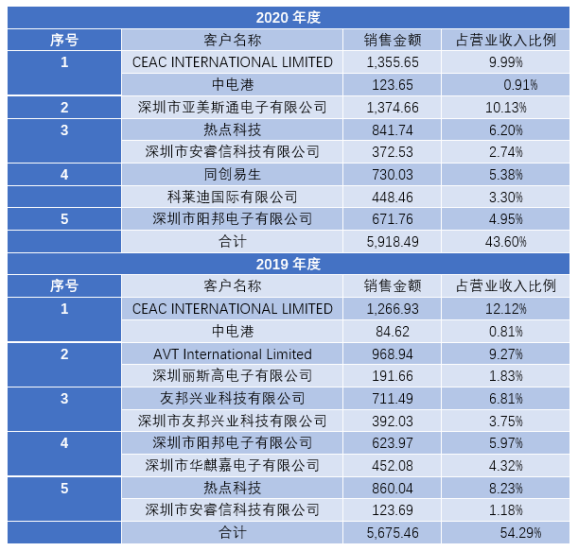 2019-2020年龙迅半导体前五大客户如下: