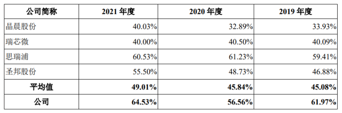在毛利率方面,与部分同行上市企业对比情况如下: