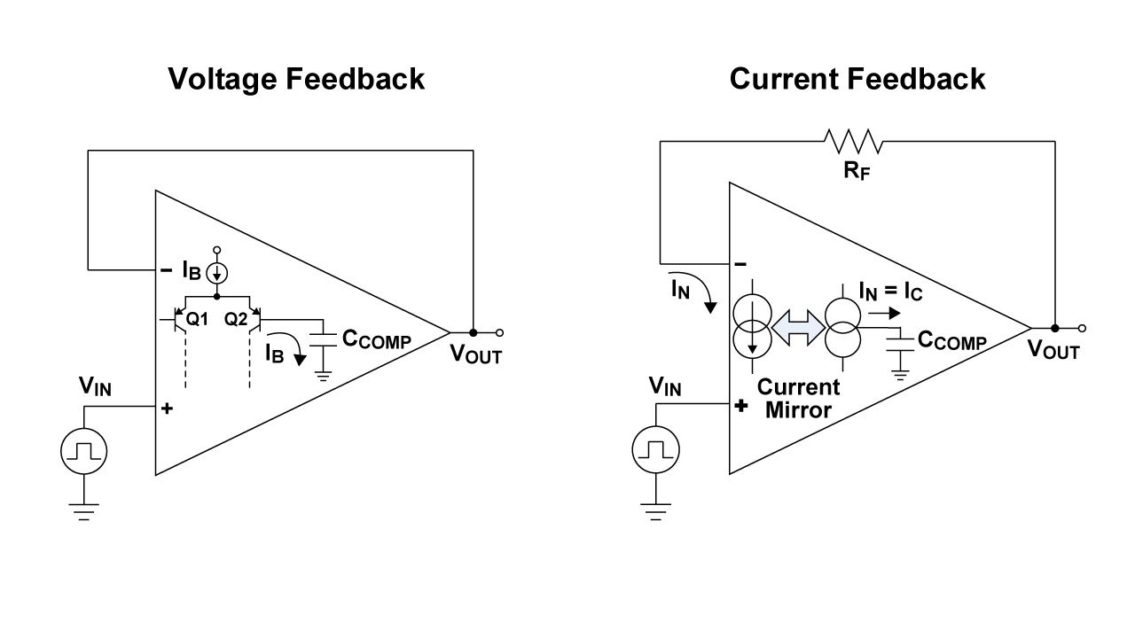 图 3 :比较电压和电流反馈运算放大器架构