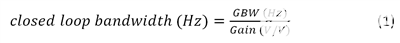 两种架构仍然用作负反馈电路中的误差放大器,但它们所需的反馈类型有所不同。例如,您可以在反相和同相增益配置中使用任一放大器类型。当前反馈架构的一个明显优势是带宽不依赖于增益。然而,在电压反馈架构中,随着增益的增加,带宽会减小,如公式 1 所示: