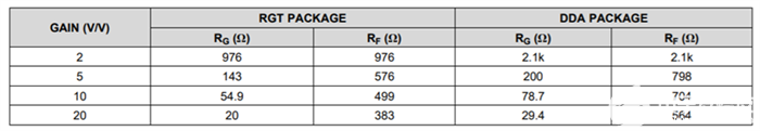 请注意,电流反馈放大器并不意味着在反馈路径中没有电阻的情况下运行。电流反馈放大器数据表将建议 R F的指定值;这些值很重要,因为 R F的值决定了放大器的补偿,即使在单位增益中也是如此。与图 4 一样,表 3 来自THS3491数据表。