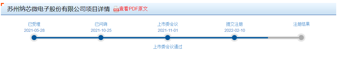 2021年11月1日,苏州纳芯微电子股份有限公司(以下简称:纳芯微)在上交所科创板成功上会。截至2022年2月10日,已完成提交注册。