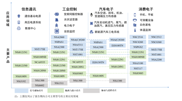在主营业务方面,纳芯微的主营业务为信号感知芯片、隔离与