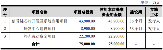为进一步扩大市场份额,此次纳芯微拟募集资金7.5亿元,用于信号链芯片开发及系统应用项目、研发