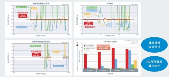 第一个优势,是抗EMI性能非常出色,可减轻降噪设计负担。