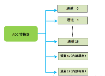2个内部通道:一个是内部温度传感器,一个是内部参考电压。