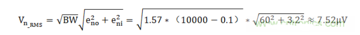 由此仪表放大器总输出噪声的RMS值,为式3-9。