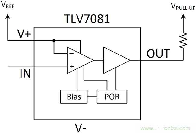 图2. 图示为TI TLV7081低压比较器的功能框图。(来源:TI)