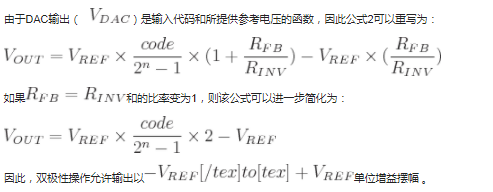 下面显示了一个简单的双极性输出电路。它包含一个单极性DAC,一个精密基准电压源和一个精密运算放大器。