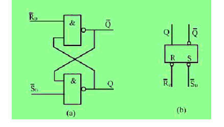 RS锁存器是一两输入、两输出的电路,其电路如图1(a),其有两个互相交叉反馈相连的两个与非门构成,其两个输出为两个相反的输出(或称为互补输出),图1(b)给出了其逻辑符号。