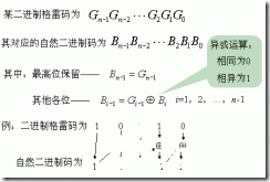 二进制格雷码转换成自然二进制码,其法则是保留格雷码的最高位作为自然二进制码的最高位,而次高位自然二进制码为高位自然二进制码与次高位格雷码相异或,而自然二进制码的其余各位与次高位自然二进制码的求法相类似。