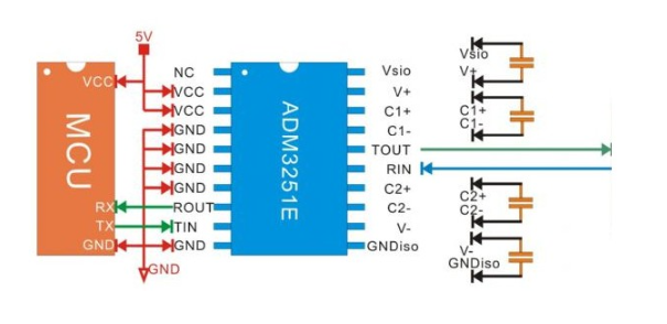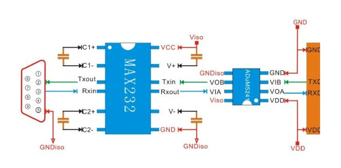 由于RS-232的典型应用是在系统间的通讯,因此在各系统间的隔离设计已经变的非常必要。隔离不仅可以保护器件免受总线上的高压危害,还可以消除总线上的接地回流,同时隔离还可以有效的减少系统间数据传输的误码与错误。