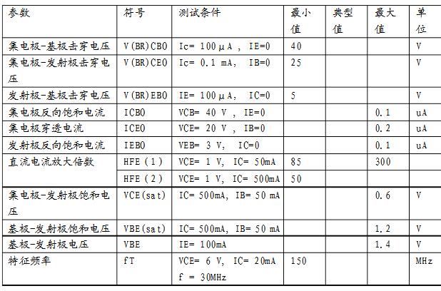 S8550电子特性(在环境温度25℃条件下进行测试):