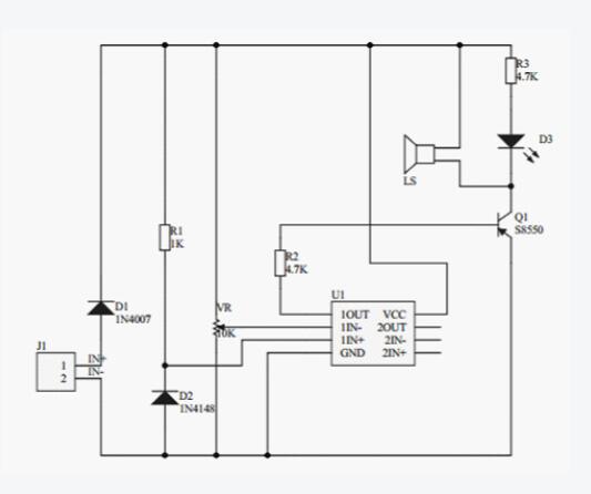 蓄电池电源的使用会导致输出电压降低,如果长时间在低电压的蓄电池,它会损坏。这套房可以用来测试其他12V蓄电池的输出电压,当蓄电池电压低的电压下,红色指示灯亮,蜂鸣器鸣叫,实现声光报警,以达到掌握蓄电池放电状态。