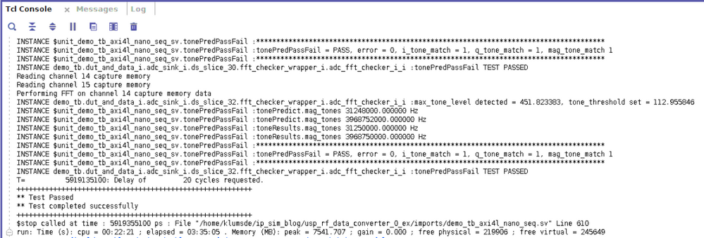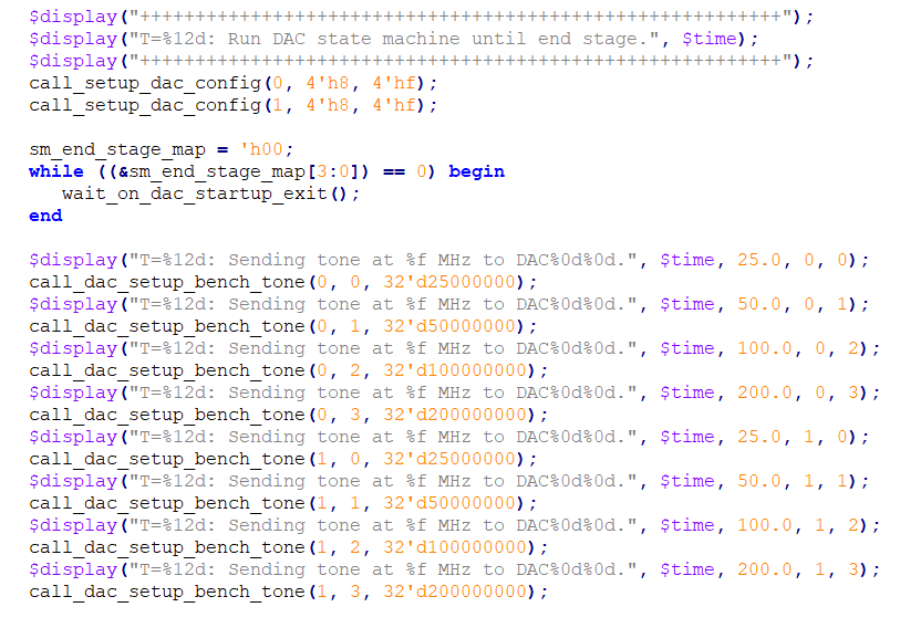 在此步骤后,它会对 Tile 执行某些设置,然后开始在测试激励文件中开启源端和接收端。它还会开始加载 DAC 源内存。