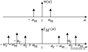 例如s(t)为10KHz,载波为10MHz,则调制后的信号频率成分为9.99MHz和10.01MHz。