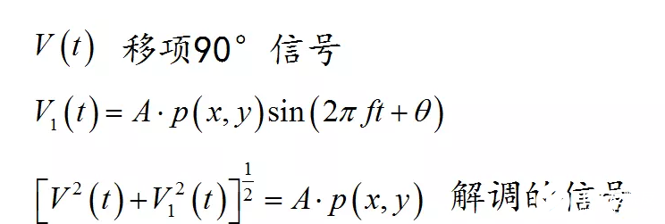 如果能够得到V(t)移相90°的信号,那么求取这两个信号的对应实部与虚部的复数的模,便是解调后的信号。具体如下式所示: