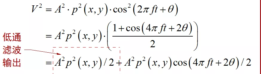 一个成分是没有调制信号的低频信号部分,另外一个是两倍频的调试信号。因此,通过低通滤波器可以获得前面的低频信号,然后再将该信号进行开放便可以得到解调信号。
