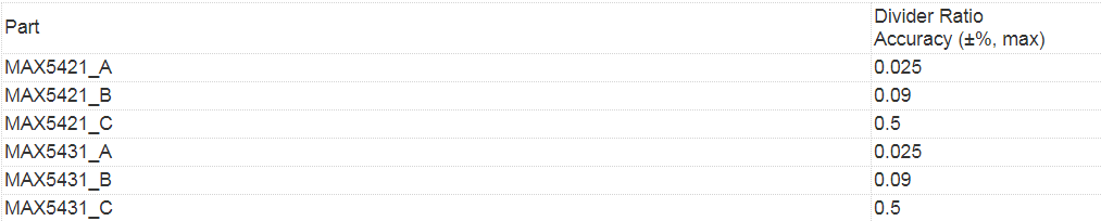 表2. MAX5421/MAX5431分压电阻容差
