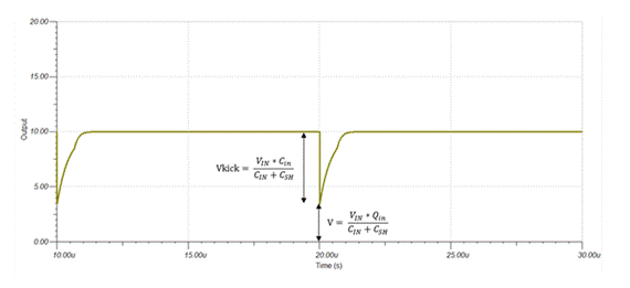 我们设计 RC 网络的目标就是在有限的时间内采样时间(tacq)内将 Csh 上的电压达到满足精度要求(1/2LSB 内),如果不加入 RC 或者 RC 选择不合适,可能出现如图所示的情况(横坐标为时间,纵左边为 Vfilt 电压,可以看到信号幅值变化大且反向恢复时间长),这是因为运放的带宽不足或者 RC 电路中电容太小,导致 Qfrm_opa 与 Qfrm_cflit 不能在采样时间(tacq)内将电荷转移至 Csh 中,如果在信号没有达到足够的采样时间内进行采样,就会产生信号失真。