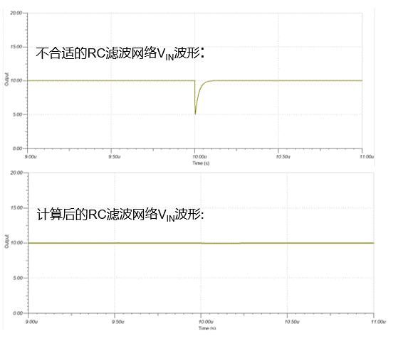 图 7. 不合适的 RC 与加入计算后 RC 的 VIN 电压波形对比