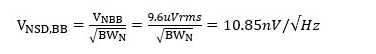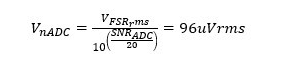 根据计算得出的总噪声,取 ADC 噪声的 1/5,进行计算可以计算出应该选择的运放的 1/f 噪声和宽带噪声的最大影响值,假设选用的运放有极小的 1/f 噪声可以忽略不计的话,可以经过以下公式计算,得出结果: