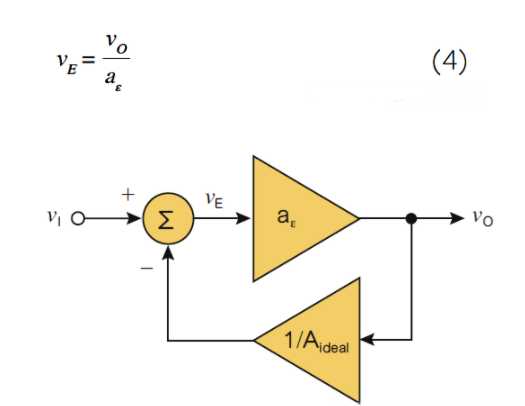 并意识到高aε值的放大器只需要相当小的vE来维持vO(如果将放大器比作双筒望远镜,就像反过来看双筒望远镜一样)。将公式(2)重写为:
