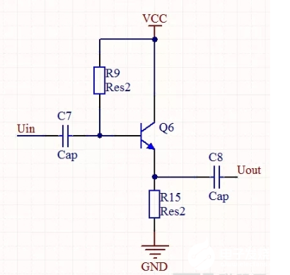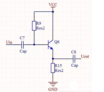 该电路为共集电极放大电路,我们可以看到输出端由我们的R15来取出输出电压,同时该电路的R15所产生的电压也具有反馈输入电压的作用,由我们的公式UBE=UB-UE可得,同时我们的输出总是会小于输入一个压降值,输入和输出同相位,存在电流放大作用,我们由负反馈的原理可以知道,该电路的输入电阻大,输出电阻小(由R15属于负反馈电阻得出的结论),根据这个特性,输入电阻大,输出电阻小,带负载能力较强,多用于放大回路的输入级或者输出级。