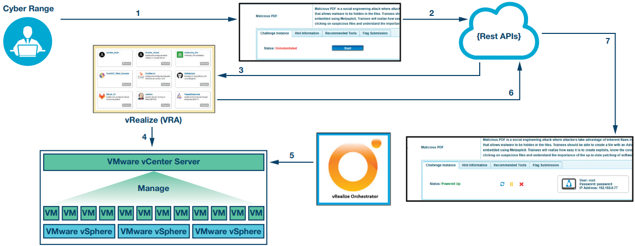 图3. Cyber Range通过REST API与vRA交互。