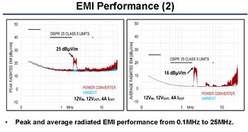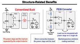 3.这种架构所实现的BUCK变换器在EMI特性、功率密度和效率方面都优于传统的变换器,另外,右二的图也说明,相比于传统BUCK,这种变换器把电感放在输入端,这样PCB上就只剩下输入滤波、PMIC、输出负载这三部分,PCB的布局方面会更有优势。