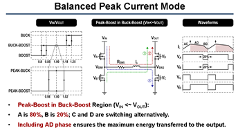 ADI的这篇文章就是针对传统BUCK-BOOST四个开关管轮流导通共模噪声大的痛点,提出了更优的控制方式和模式切换方案。