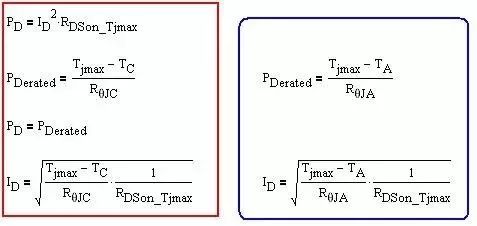 ID定义为芯片在最大额定结温TJ(max)下,管表面温度在25℃或者更高温度下,可允许的最大连续直流电流。该参数为结与管壳之间额定热阻RθJC和管壳温度的函数: