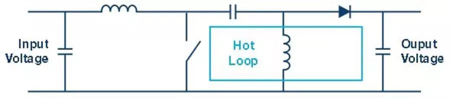 由于SEPIC转换器也是一种开关模式稳压器,所以这种拓扑中也会出现相同的快速开关电流(与降压转换器类似)。为了尽量减少产生干扰,这些热回路电流路径应该尽可能短。出于这个目的,必须考虑降压稳压器的每条路径。