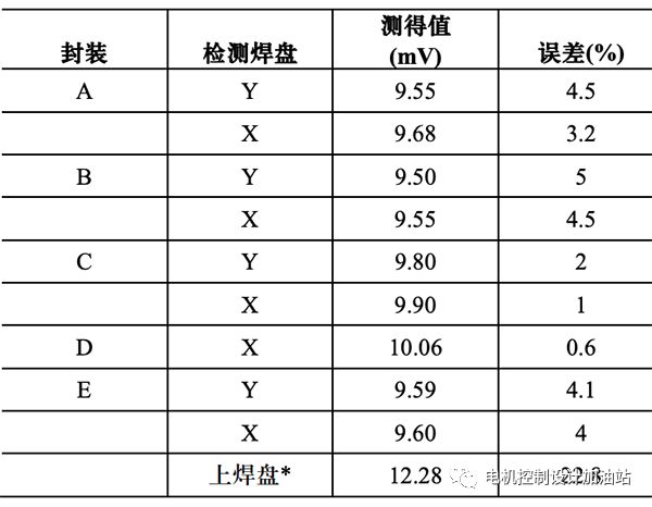 表 1 列出了采用图 4 所示检测焊盘位置测得的数据。
