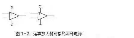 运算放大器所接的电源可以是单电源的,也可以是双电源的,如图1-2所示。运算放大器有一些非常有意思的特性,灵活应用这些特性可以获得很多独特的用途,总的来说,这些特性可以综合为两条: