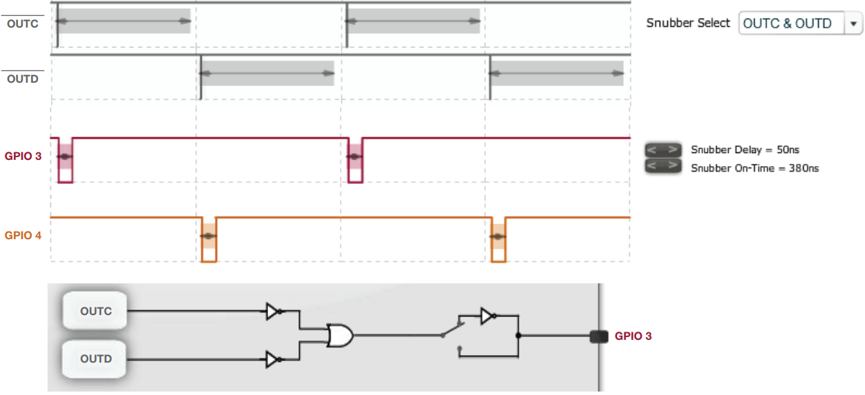 图7. 使用选项2(OUTC和OUTD)的吸收器时序