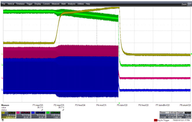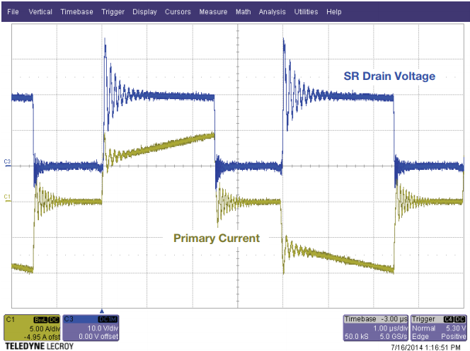 图16. 有源钳位吸收器条件下软启动期间的SR漏极波形
