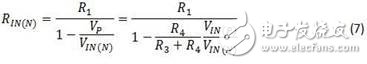 回过头看一下方程式2,同相输入端的有效输入电阻是相当简单的: