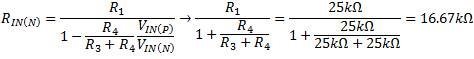 返回到方程式1,用方程式5代替输入电流,您可得出方程式6 —— 一个可计算出反相输入电阻的通用方程: