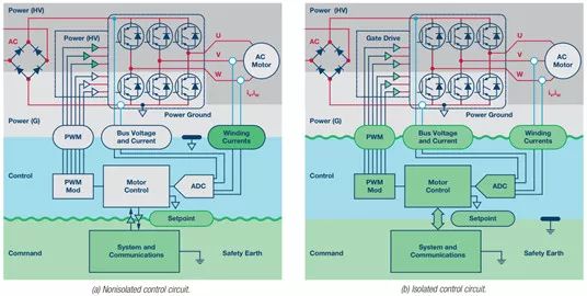 安全性要求是,用户给定电路必须与功率电路上的危险电压进行电位隔离。架构决策取决于隔离栅放置在给定和控制电路之间还是控制和功率电路之间。在电路之间引入隔离栅会影响信号完整性并增加成本。